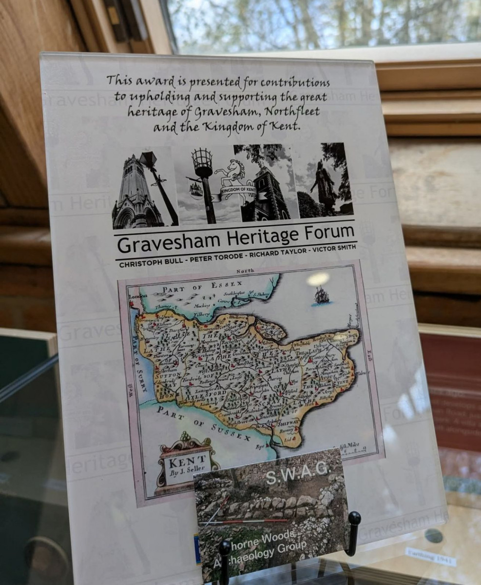 The Gravesham Heritage Forum have just pressented Shorne Woods Archaeology Group with an award to recognise our contribution to the heritage of the Gravesham area.